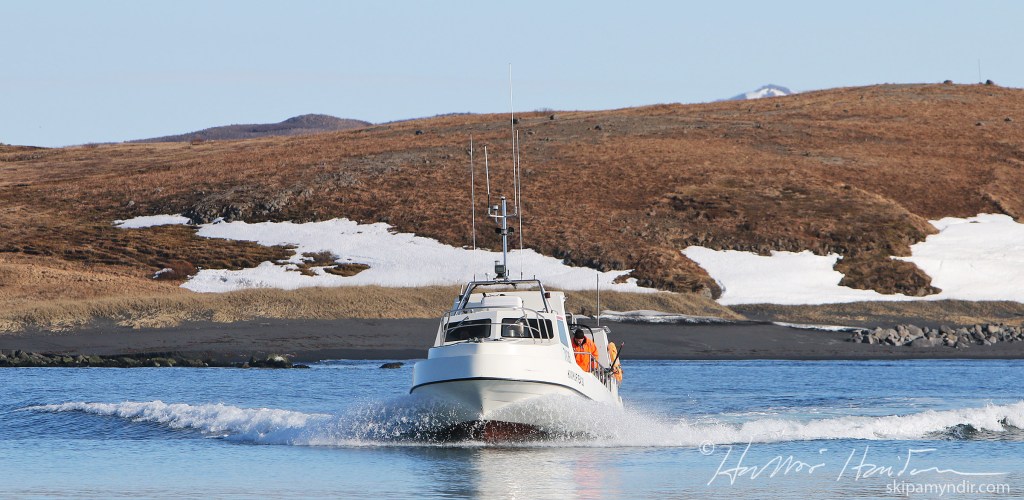 Grásleppubáturinn Kvikur EA 20 kemur hér að landi á Kópaskeri í gær en hann er gerður út af Heimsskautasporti ehf. í Grímsey.