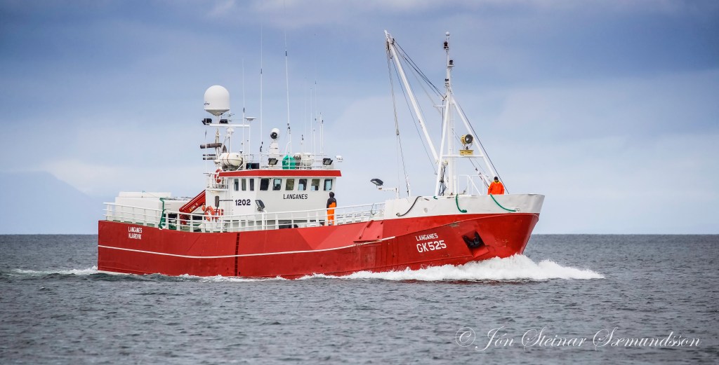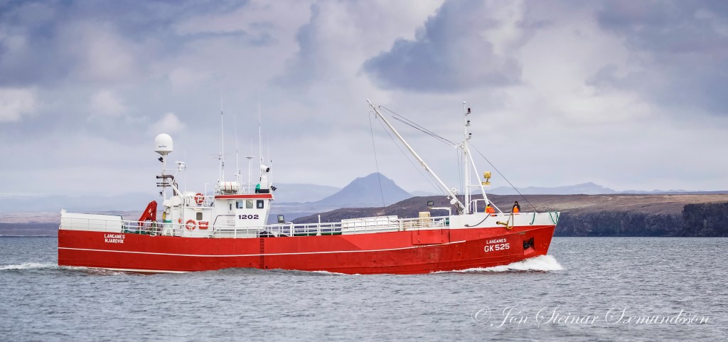 Jón Steinar tók þessar myndir í Njarðvík á dögunum og sýna þær netabátinn Langanes GK 525 þar sem hann var á landleið eftir róður.