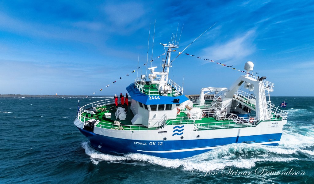 Nýtt skip bættist í flota Grindvíkinga síðdegis í dag þegar að Sturla GK 12 kom til heimahafnar eftir siglingu frá Vestmannaeyjum.
