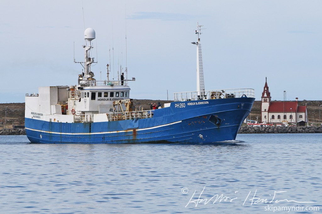 Línuskipið Hörður Björnsson ÞH 260 landaði um 50 tonnum á Raufarhöfn í gær og voru meðfylgjandi myndir teknar þegar hann lét úr höfn um kaffileytið.