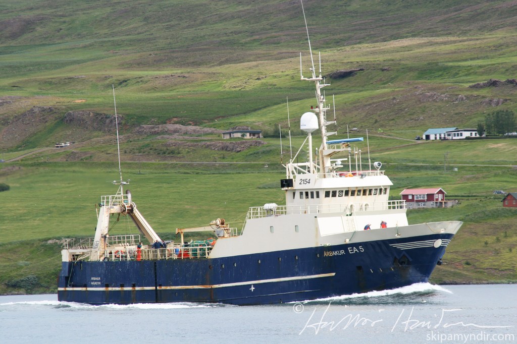 Hér kemur Akureyrartogarinn Árbakur EA 5, til heimahafnar í júlímánuði árið 2006.
