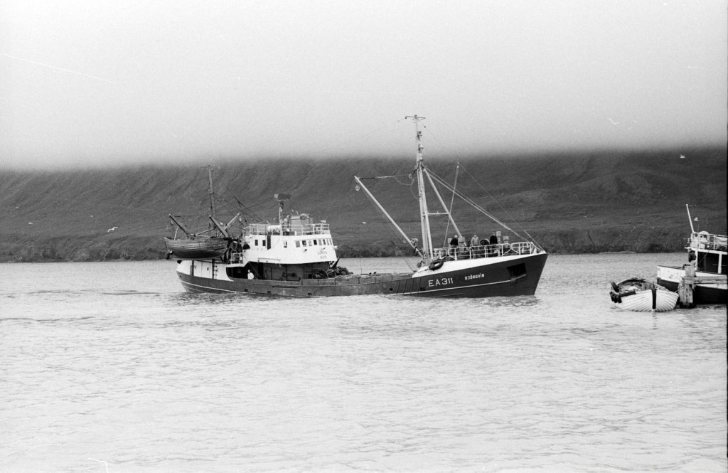Tappatogarinn Björgvin EA 311 er hér á mynd Hannesar Baldvinssonar koma að landi á Siglufirði.