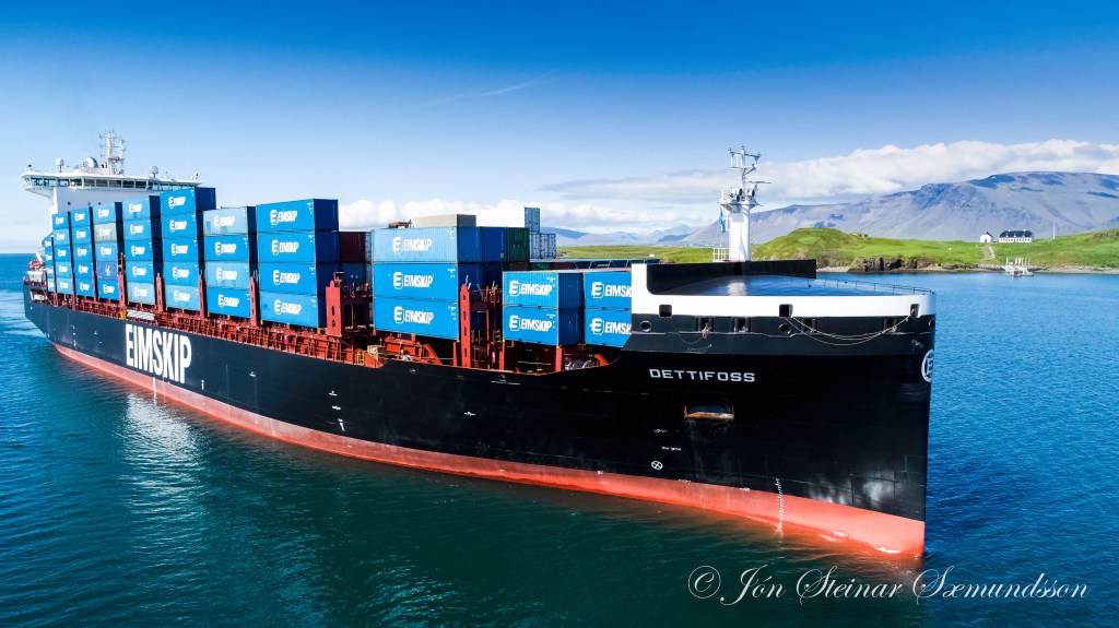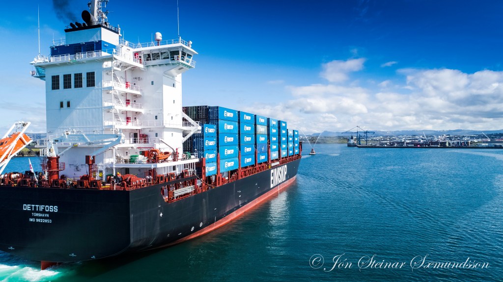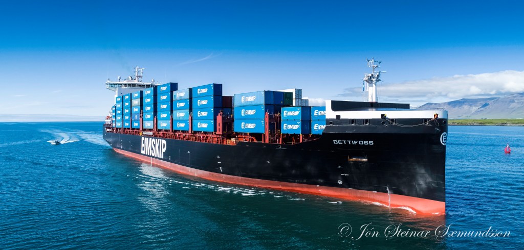 Dettifoss er með heimahöfn í Þórshöfn en líkt og önnur skip Eimskipa siglir hann undir færeysku flaggi.