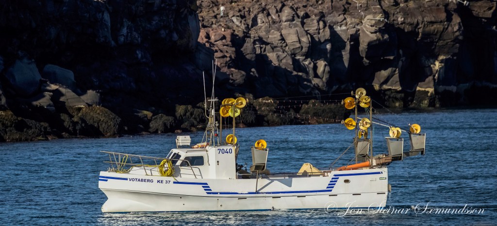Votabergið er byrjað að leita fyrir sér með makrílinn og Jón Steinar tók þessa mynd af því þar sem það var við leit undan Berginu í Keflavík.
