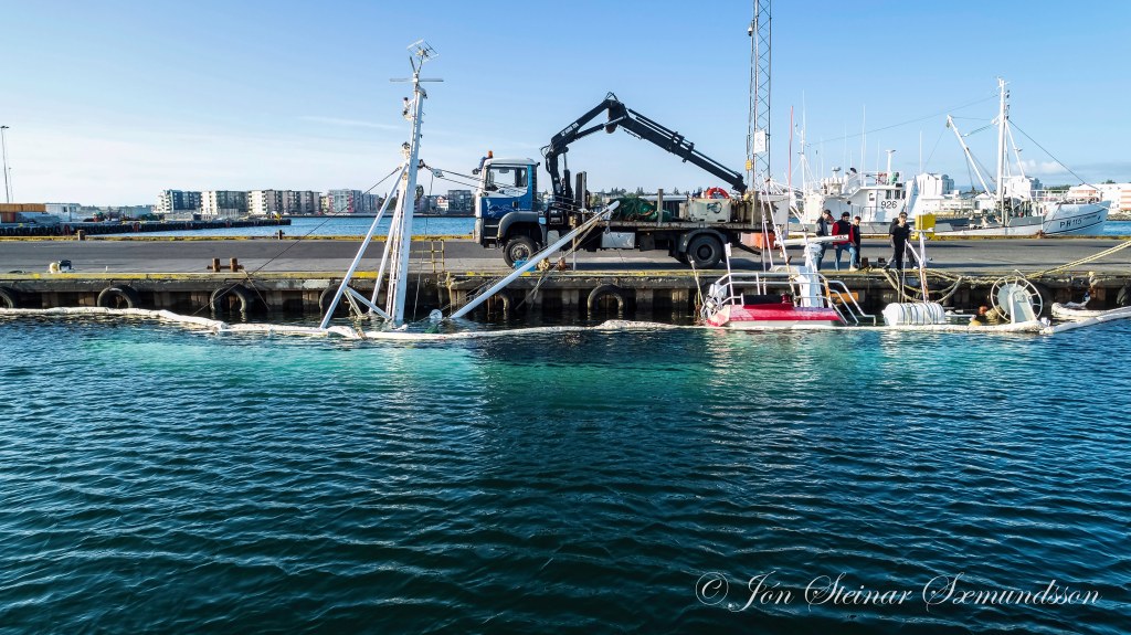 Eins og kom fram á síðunni í gær sökk hann við bryggjuna síðdegis þann dag.