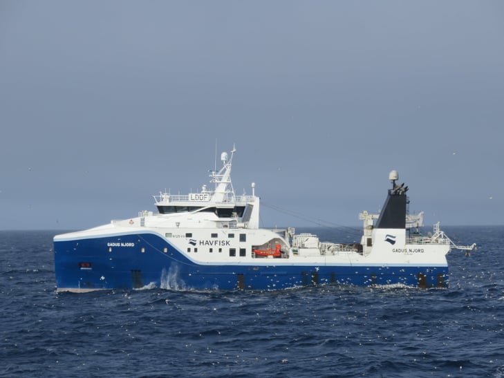 Efri myndina tók hann árið 2015 en togarinn er í eigu Havfisk sem fékk á árunum 2013 og 2014 afhenta þrjá nýja togara eftir sömu teikningu, Gadus Poseidon, Gadus Njord og Gadus Neptun.