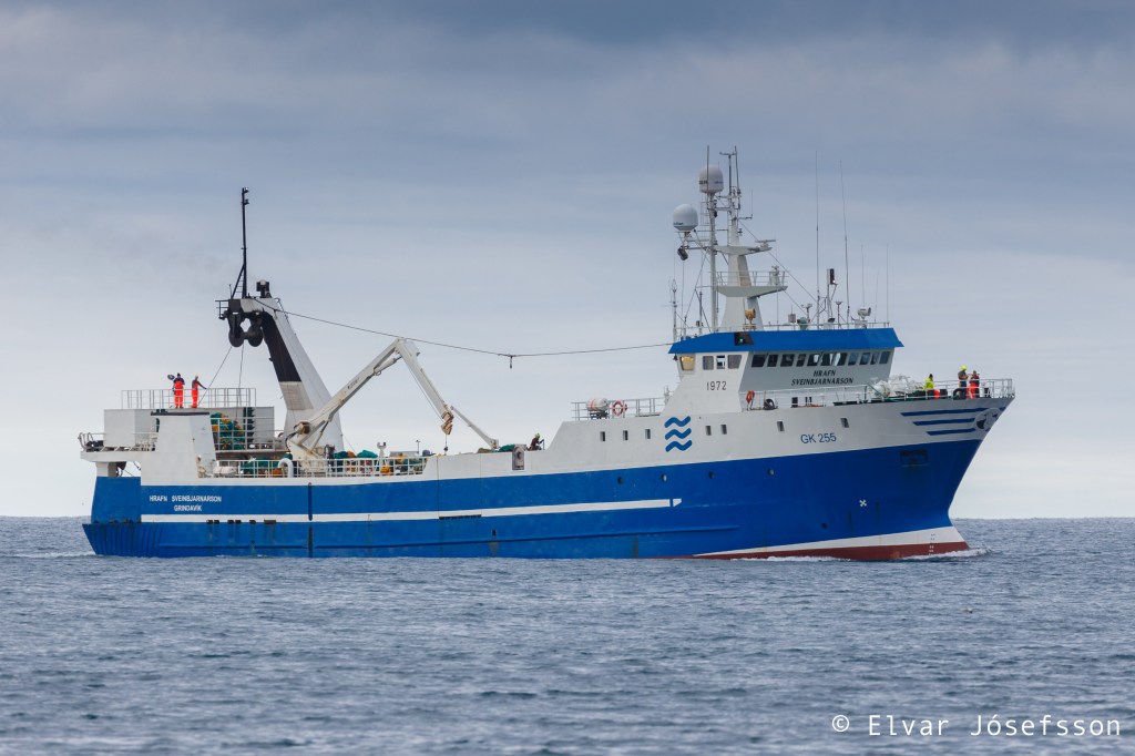 Elvar Jósefsson tók þessar myndir í gær þegar frystitogarinn Hrafn Sveinbjarnarson GK 255 kom til hafnar í Grindavík.