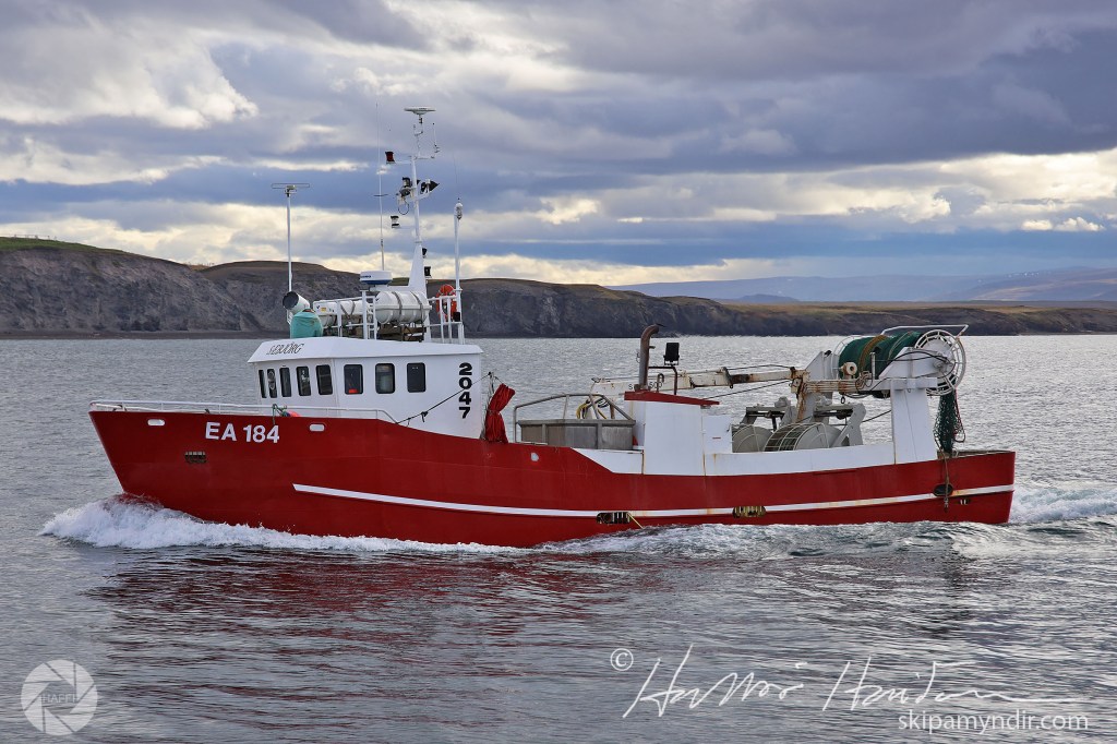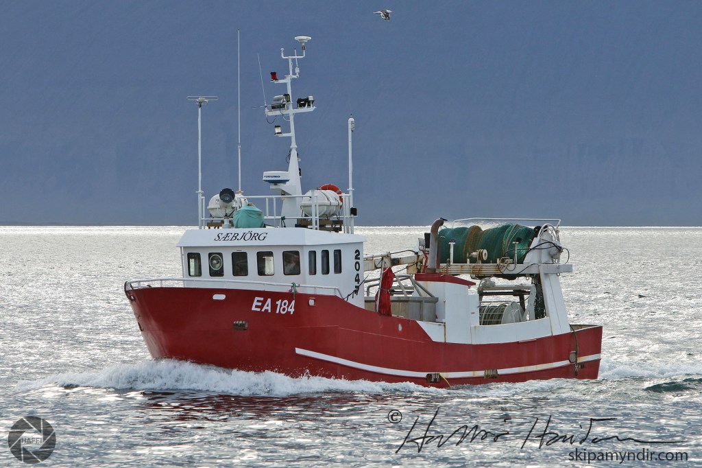 Sæbjörg EA 184 úr Grímsey er einn þeirra báta sem eru við dragnótaveiðar á Skjálfanda þessa dagana en myndirnar sem nú birtast voru teknar í gær.