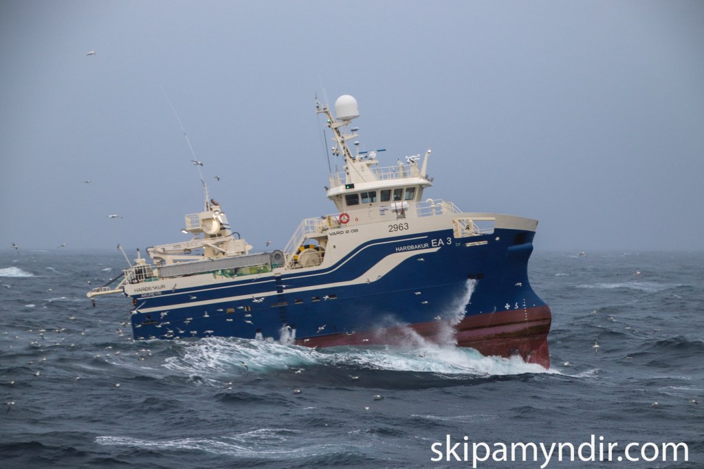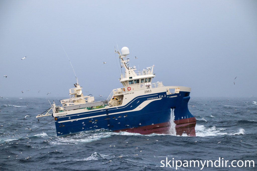 Hólmgeir Austfjörð tók þessar myndasyrpu í dag af Harðbak EA 3 þar sem hann var að veiðum á Skrúðsgrunni.