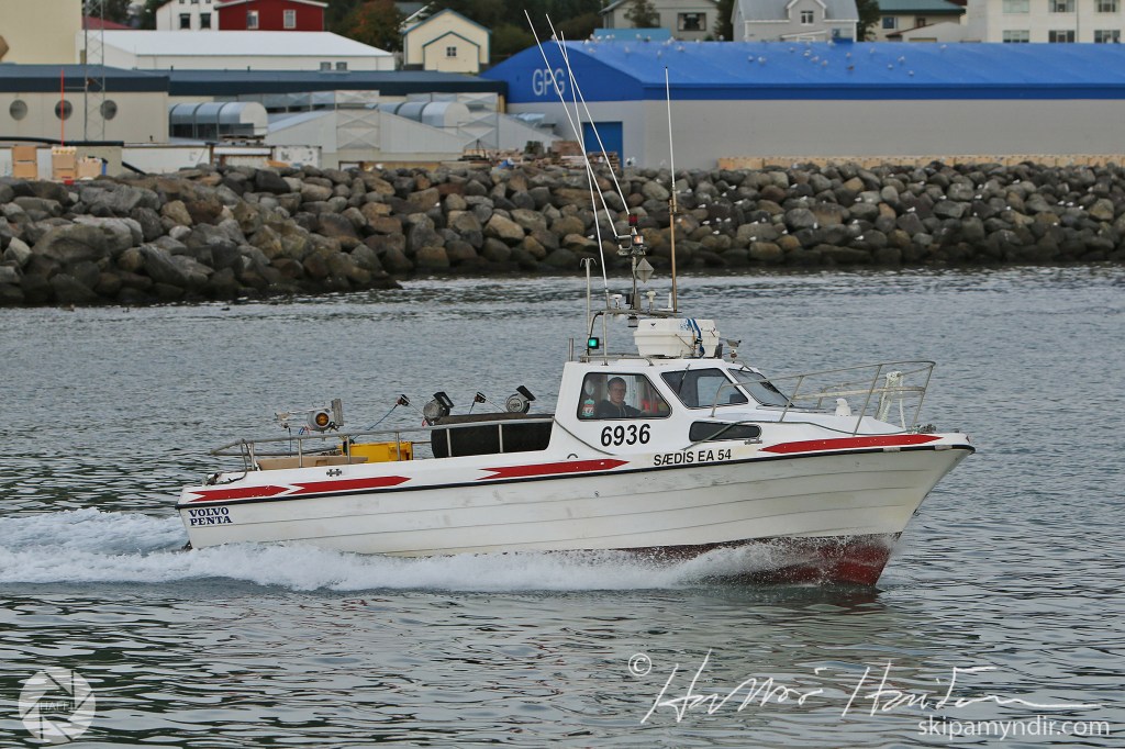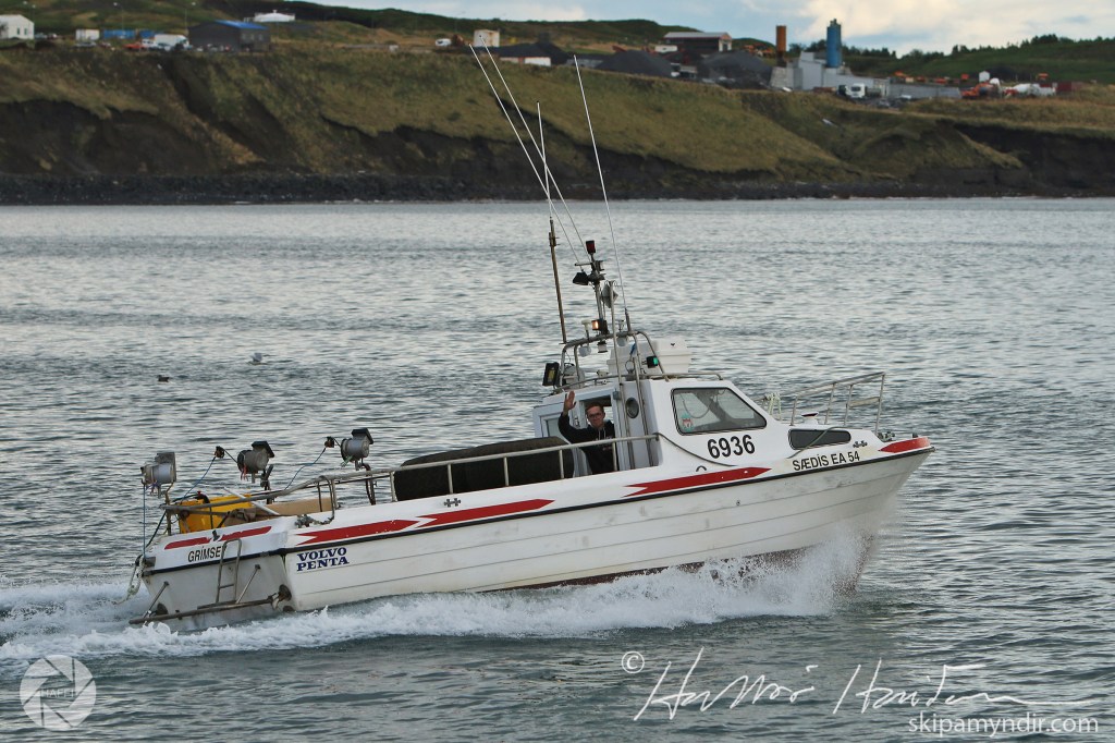 Þegar erindum lauk var haldið aftur út í eyju og voru þessar myndir teknar þegar Sædís lét úr höfn.