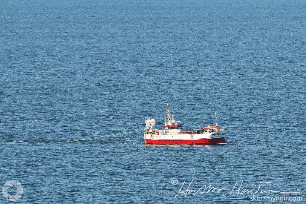 Haförn ÞH 26 frá Húsavík er hér að dragnótaveiðum á Skjálfandaflóa í dag.