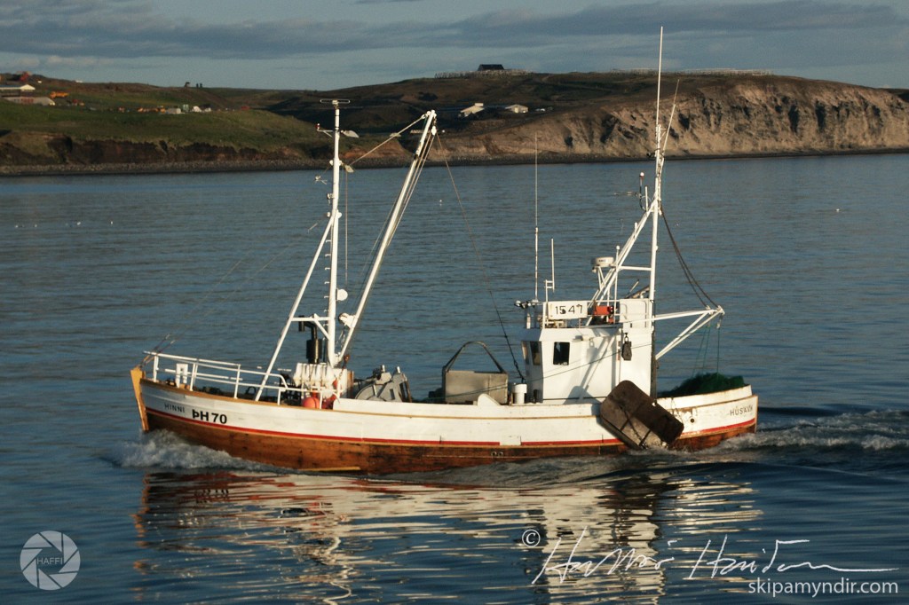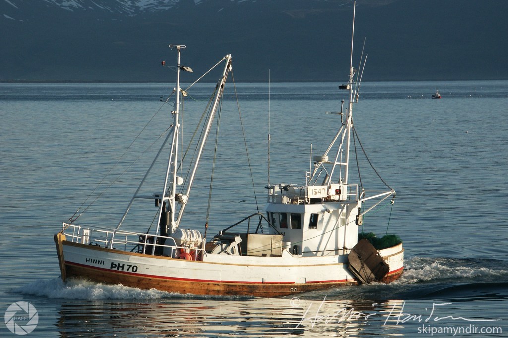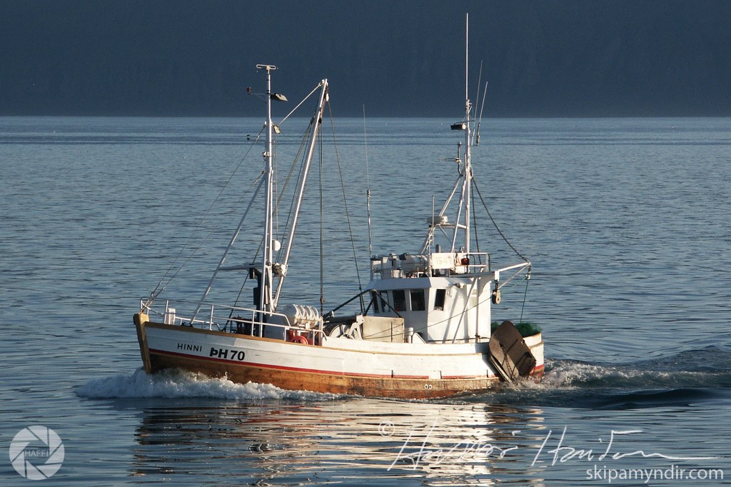 Á þessum myndum gefur að líta Hinna ÞH 70 þegar hann kom úr rækjuróðri til hafnar á Húsavík snemma sumars 2003.