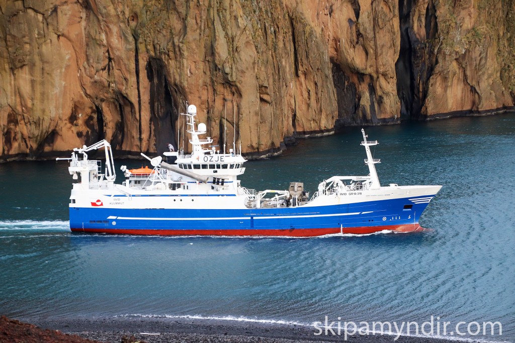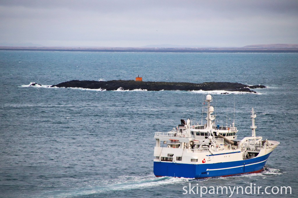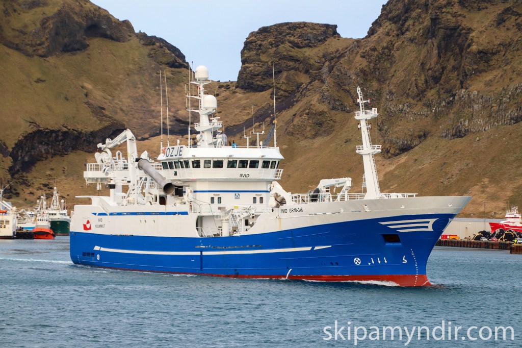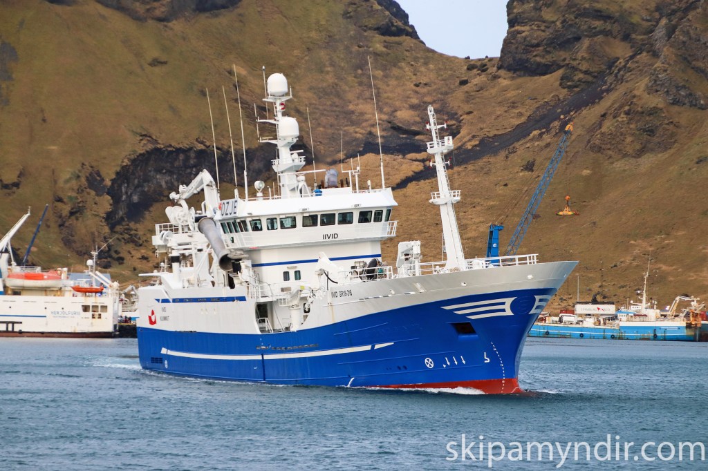 Brim er hluthafi í Arctic Prime Fisheries og Vestmannaeyingurinn Guðmundur Ingi Guðmundsson er skipstjóri á Iivid. Þegar skipið var við Eyjar í morgun tók hann hring inn í höfnina til að sýna Eyjamönnum skipið.