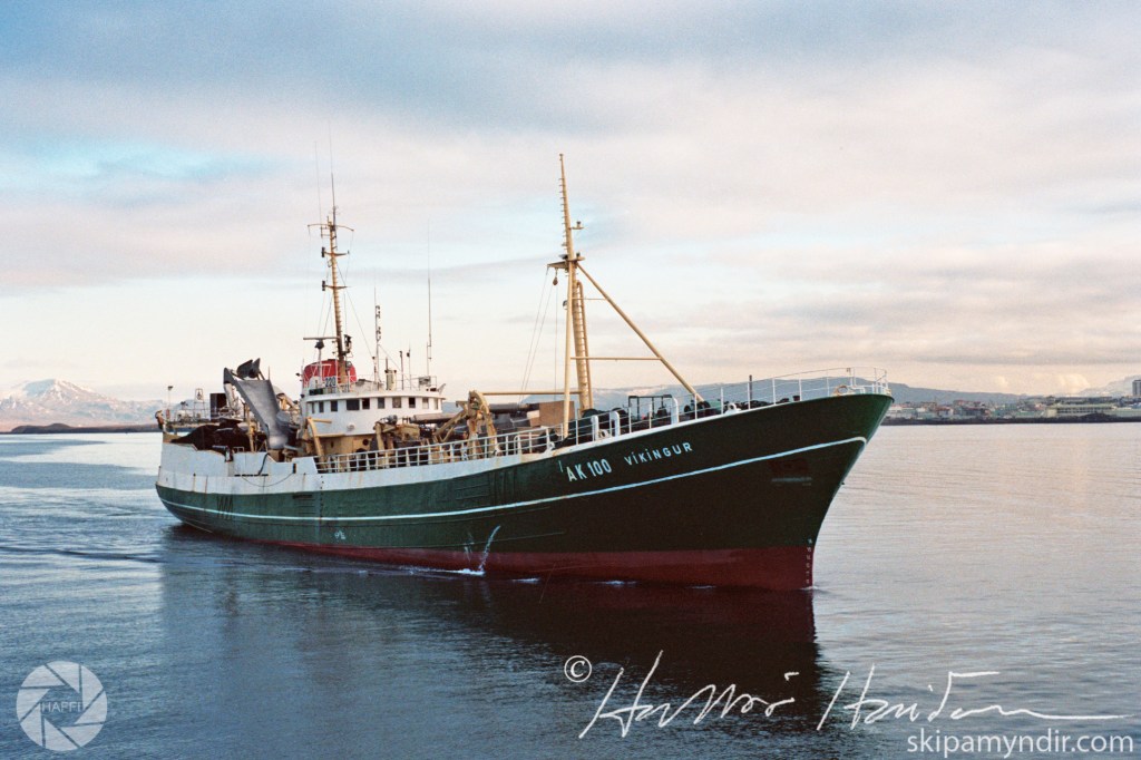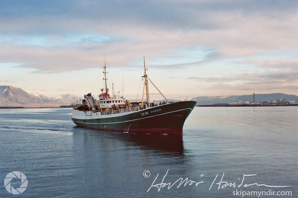 Þessar myndir af Víkingi AK 100 koma til hafnar í Reykjavík voru teknar um miðjan níunda áratug síðustu aldar, að haustlagi ef minni ljósmyndarans er rétt.