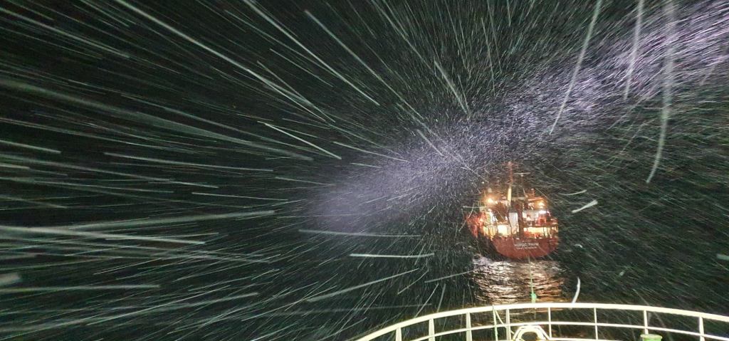 Eiríkur Sigurðsson skipstjóri á rækjufrystitogaranum Reval Viking tók þessa mynd í nótt þegar togarinn var að taka olíu.