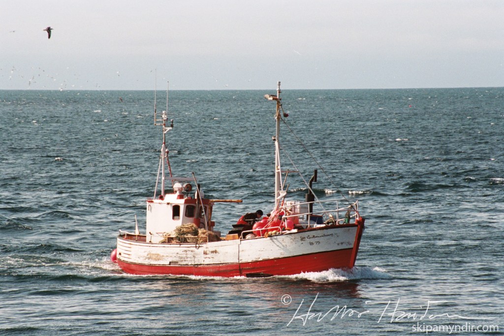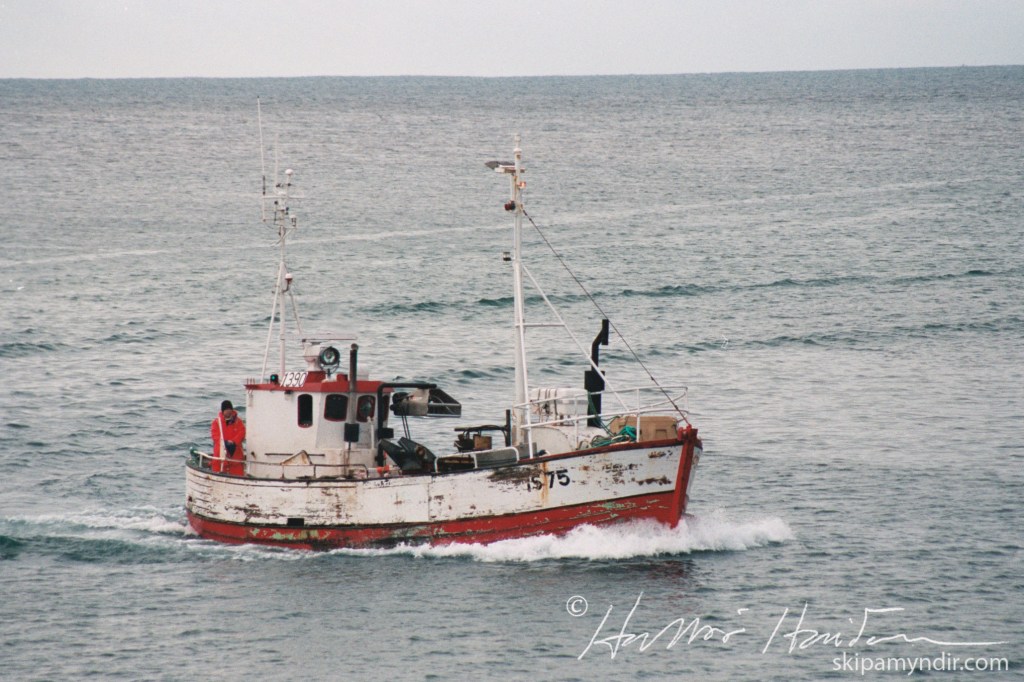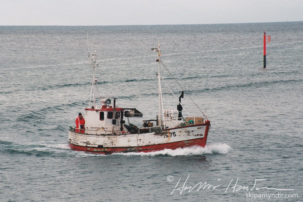 Jón Guðmundsson ÍS 75 sést hér koma til hafnar í Sandgerði um árið en báturinn var smíðaður í Bátalóni árið 1973.