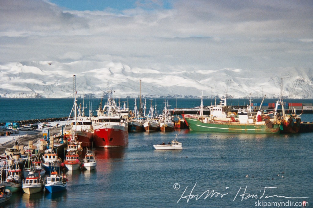 Eins og sjá má var annar bragur við höfnina þá en nú og margir að gera út báta, stóra sem smáa.