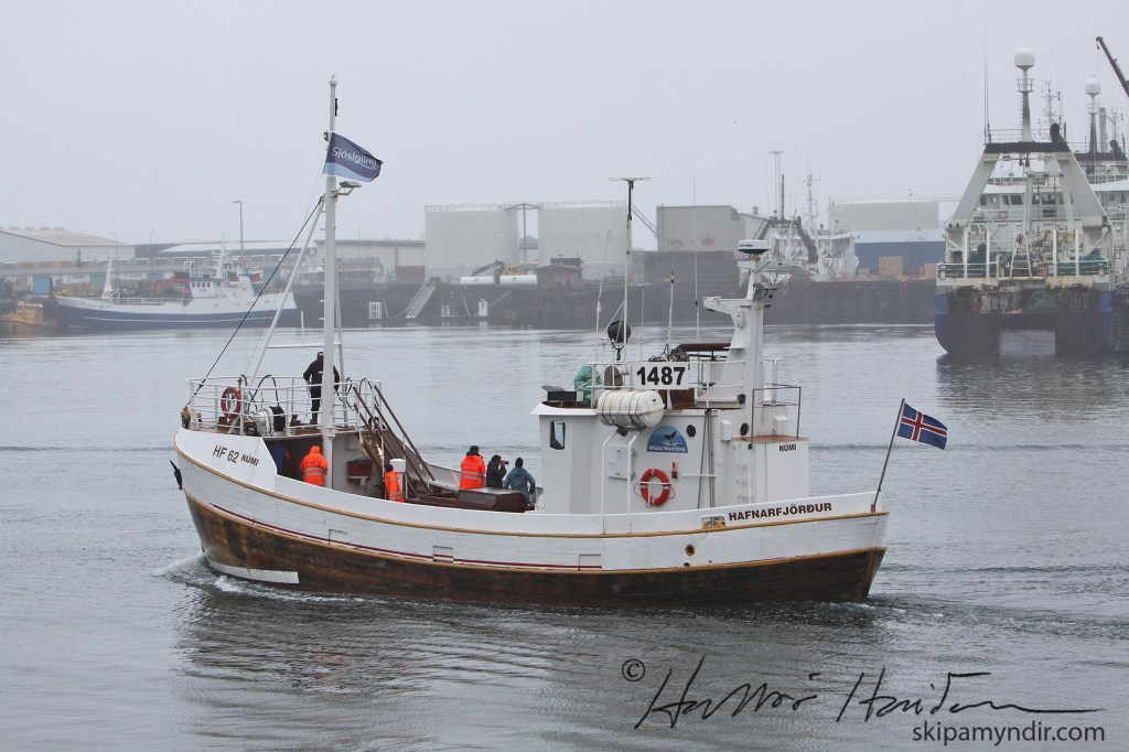 Hvalaskoðunarbáturinn Númi HF 62 kemur hér til hafnar í Reykjavík sumarið 2010 en eins og glöggir síðulesarar sjá er hér um Stykkilshólmssmíði að ræða.