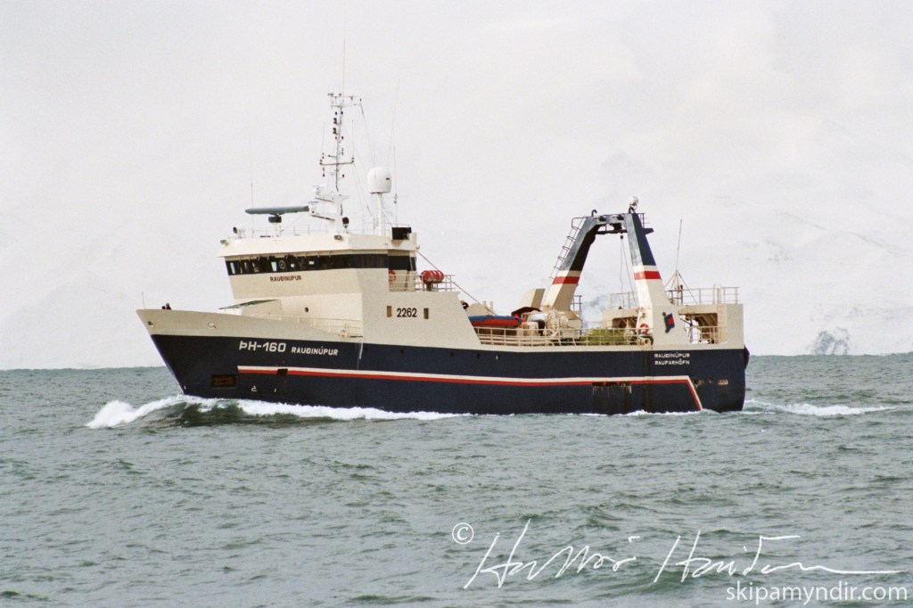 Rauðinúpur ÞH 160 er hér á siglingu vorið 1999 en þarna var hann nýkominn úr breytingum í Póllandi og var að fara í sinn fyrstu veiðiferð eftir það. En það var tekinn myndahringur þegar haldið var á miðin frá Húsavík.