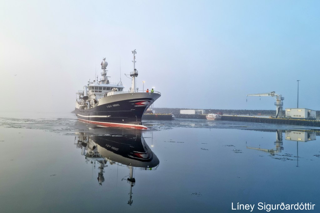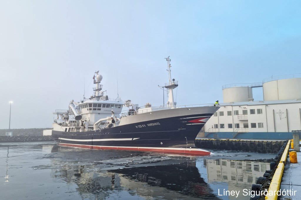 Líney Sigurðardóttir á Þórshöfn tók þessar myndir í gærmorgun þegar norska loðnuskipið Hardhaus kom þangað með 470 af loðnu til frystingar.