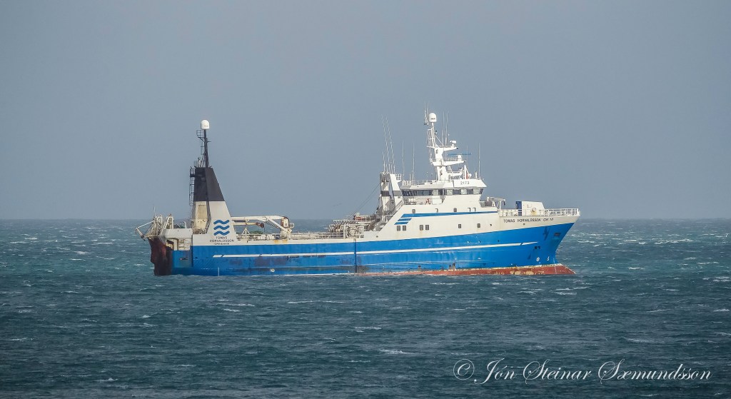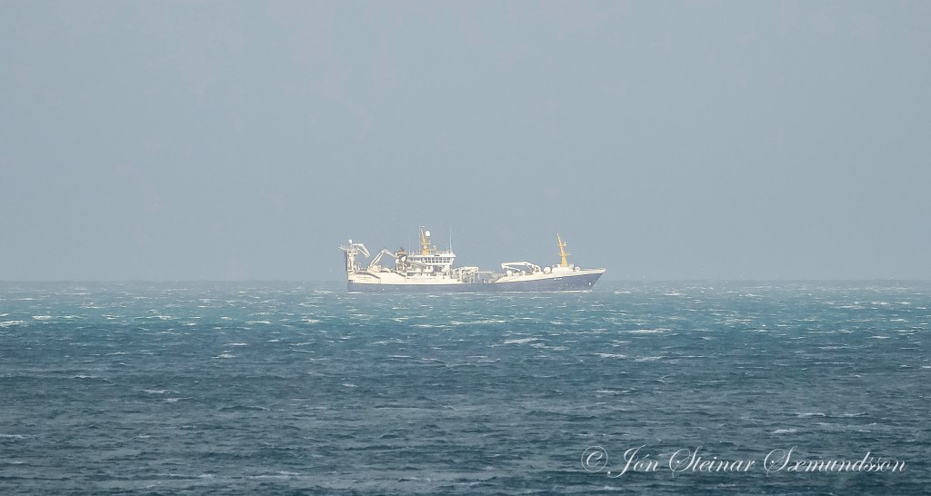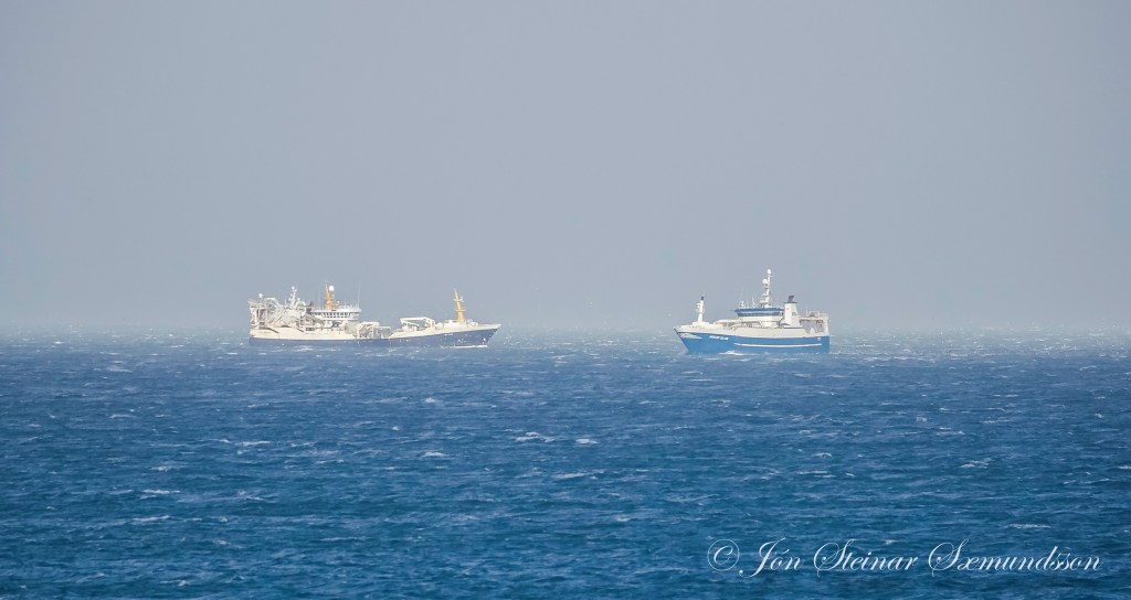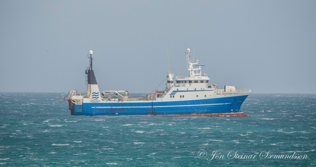 Þarna mátti kenna Tómas Þorvaldsson GK 10, Valdimar GK 195, Hákon EA 148 og Polar Amaroq.