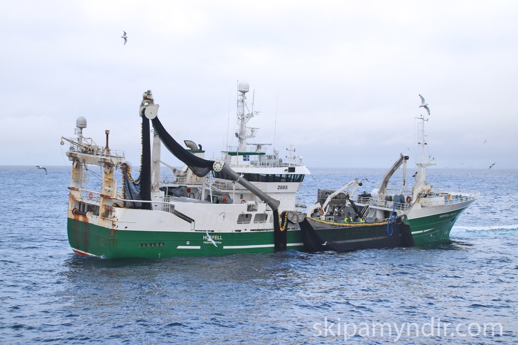 Hoffell SU 80 er hér að loðnuveiðum út af Snæfellsnesi í dag en myndirnar tók Hólmgeir Austfjörð um borð í Álsey VE 2.