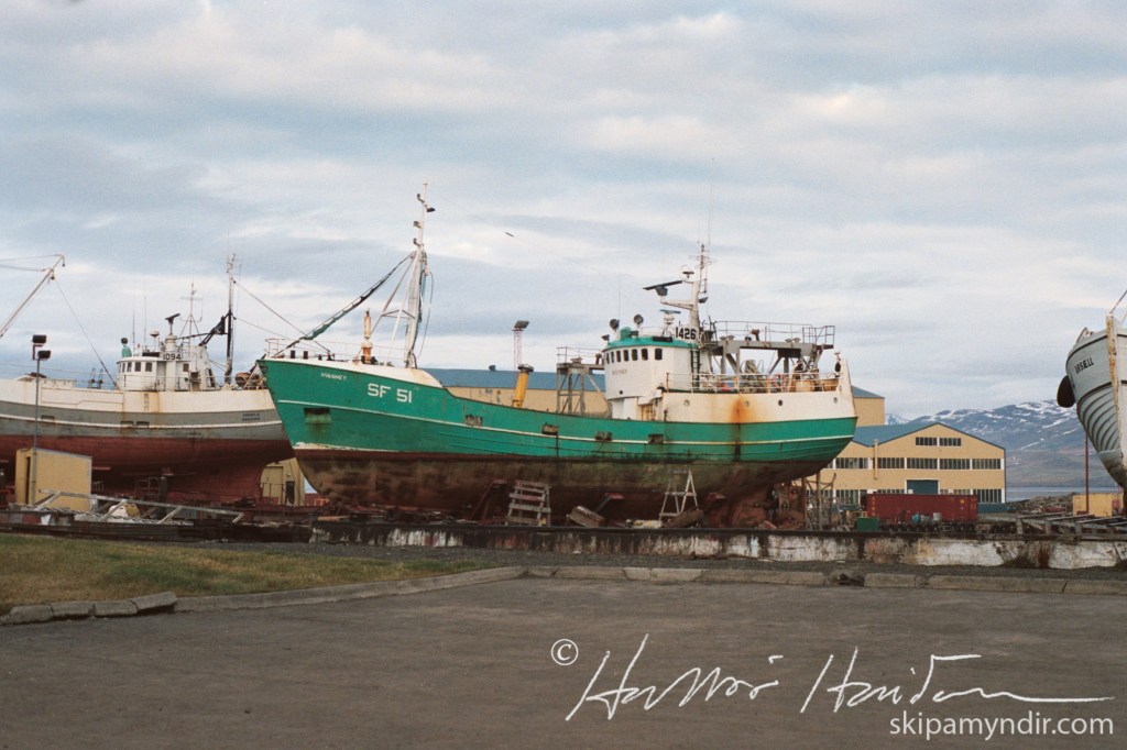 Hvanney SF 51 frá Hornafirði er hér í slipp á Akureyri um árið og það var Frosti ÞH 220 líka. Auk þess má sjá glitta í Ársæl EA 74.