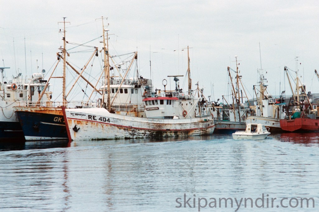 Þessa mynd tók Höddi vinur minn, þá skipverji á Arney KE 50, í Sandgerðishöfn um árið. Sýnir hún nokkra báta við bryggju og þar ber mest á Hafnarbergi RE 404.