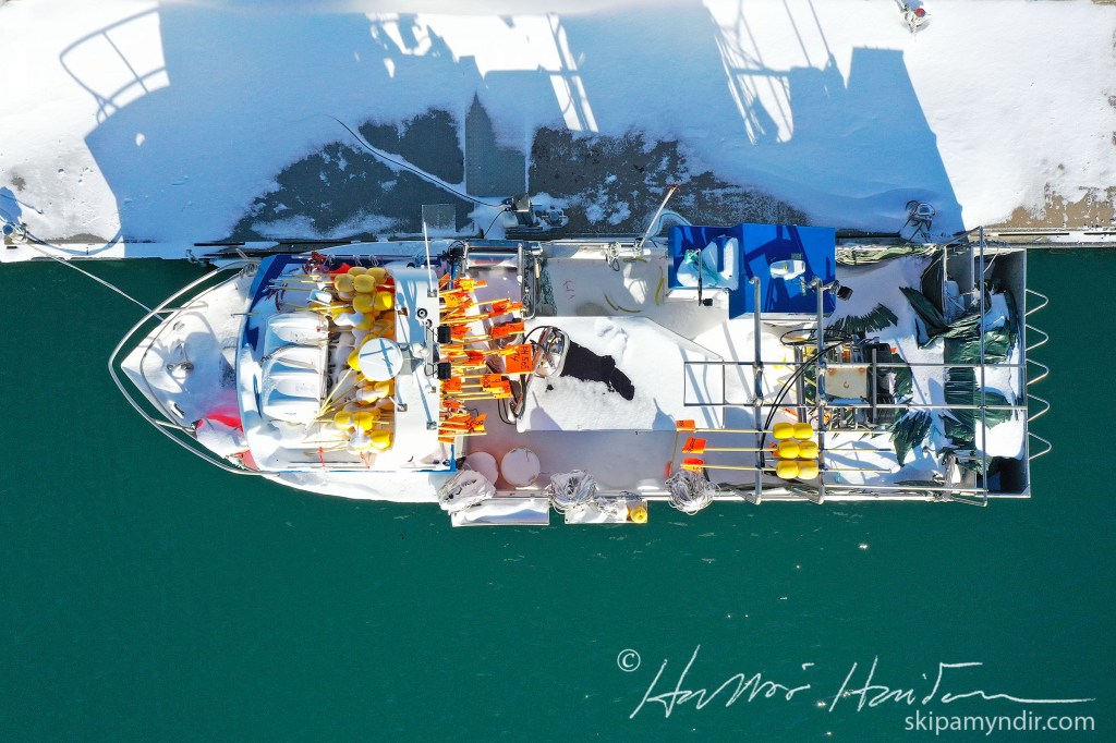 Á myndinni má sjá aflahæsta grásleppubát landsins í fyrra, Aþenu ÞH 505, við bryggju á Húsavík klára til veiða.