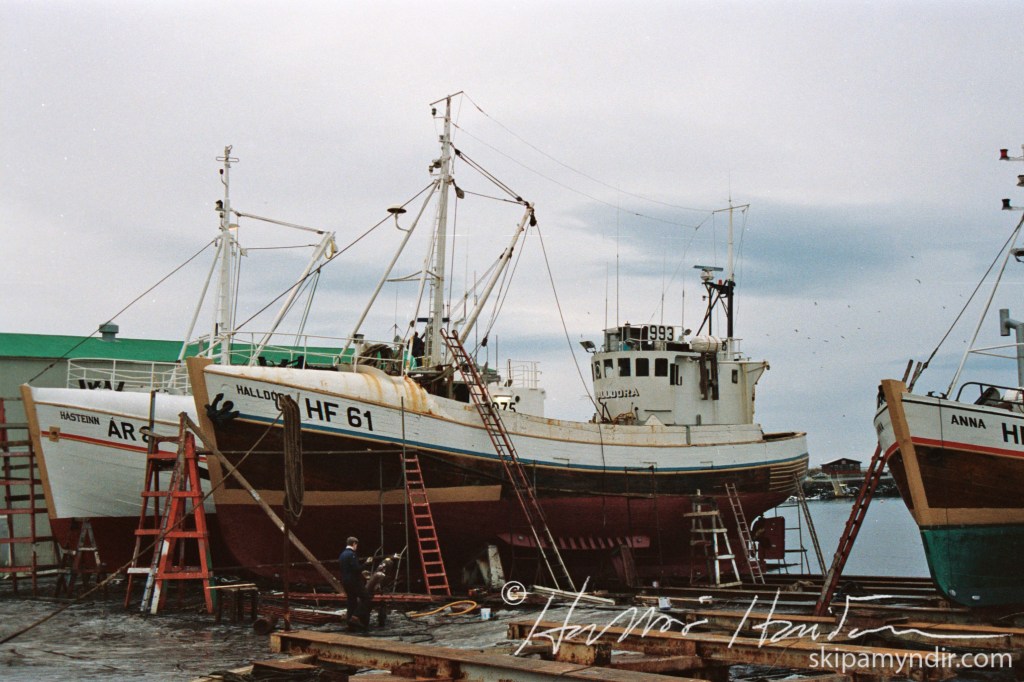 Halldóra HF 61 er hér uppi í Drafnarslippnum í Hafnarfirði og einnig má sjá glitta í Hástein ÁR 8 og Önnu HF 39.