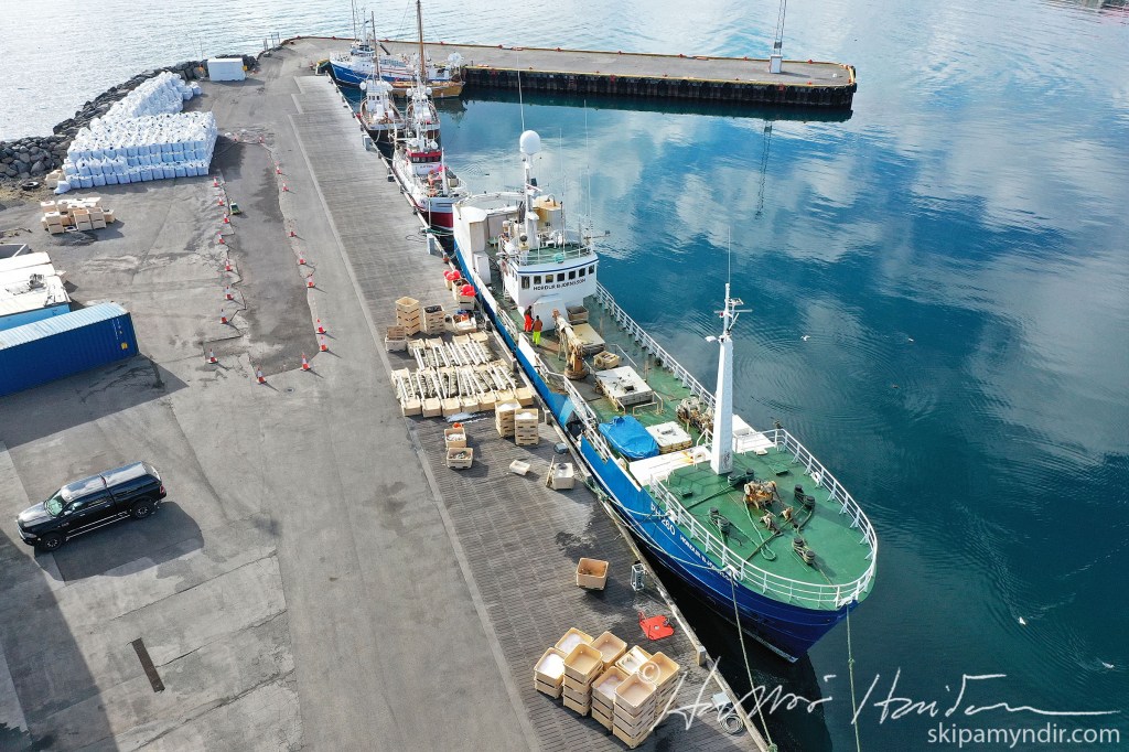 Línuskipið Hörður Björnsson ÞH 260 sést hér á myndinni að ofan við bryggju á Húsavík í dag en hann kom að landi í fyrrinótt.