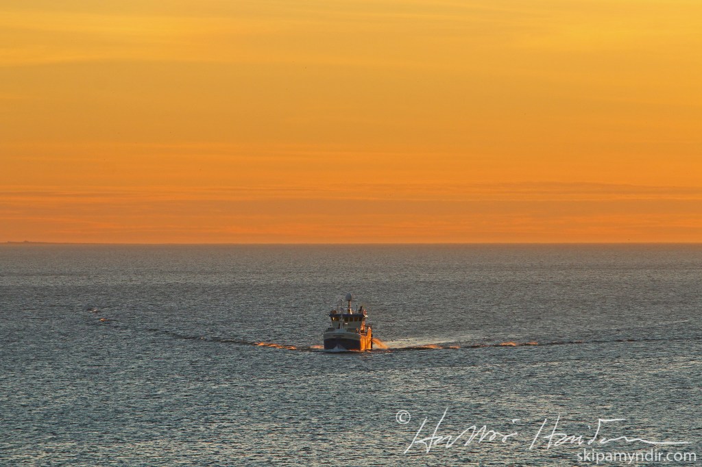 Hafborgin siglir hér til hafnar á Húsavík í gær en sólarlagið á Skjálfanda var ægifagurt. Ekkert meira um þessa mynd að segja.
