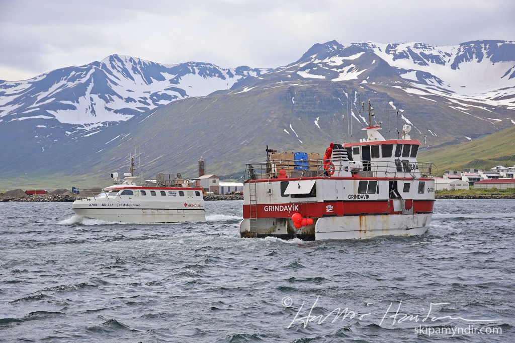 Hér mætast línubátarnir Jón Ásbjörnsson RE 777 og Óli á Stað GK 99 í Siglufjarðarhöfn á dögunum en þaðan hafa bátarnir róið að undanförnu.