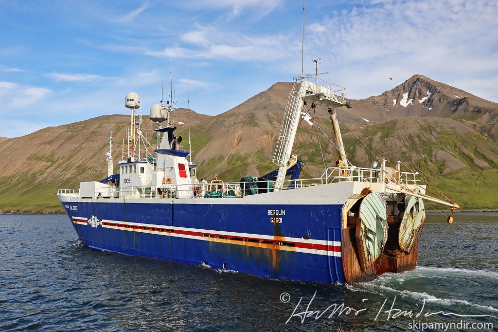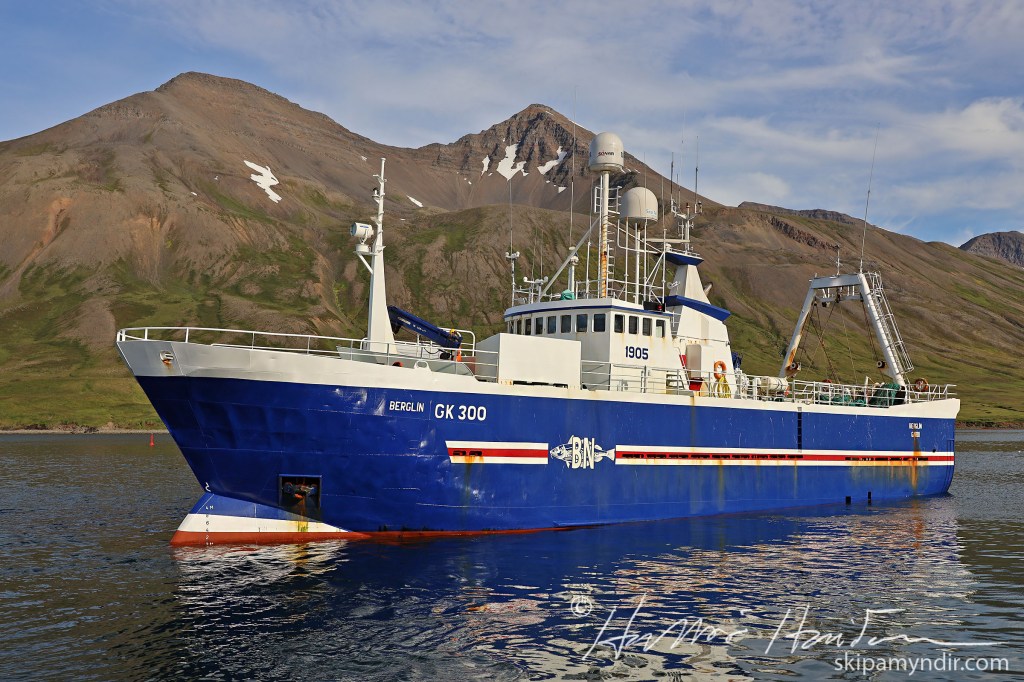 Rækjutogarinn Berglín GK 300 landaði á Siglufirði í dag og voru þessar myndir teknar þegar hún lét aftur úr höfn undir kvöld.