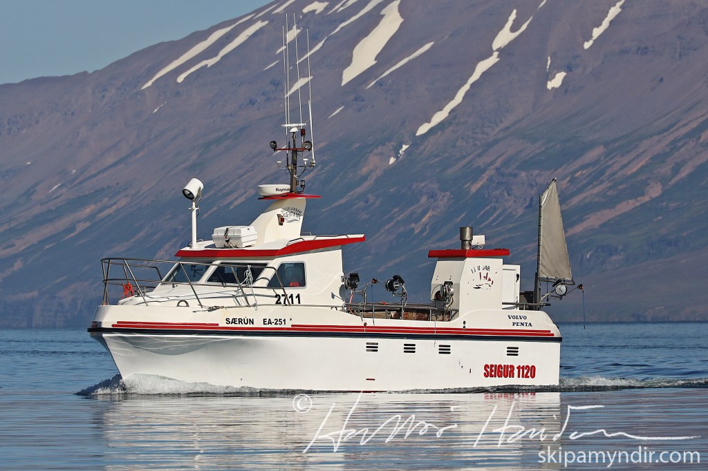 Særún EA 251 kemur hér til hafnar á Árskógssandi í gærmorgun en hún er á handfæraveiðum.