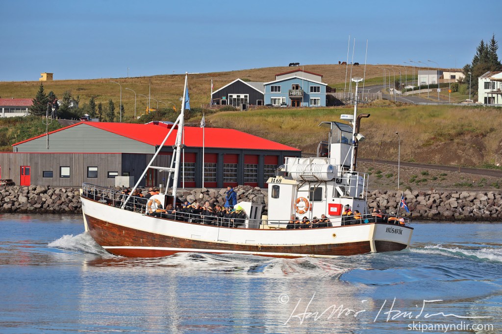 Sylvía leggur hér upp í hvalaskoðunarferð á Skjálfanda í dag en veðurblíða var við flóann fram eftir degi.