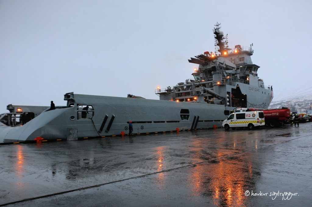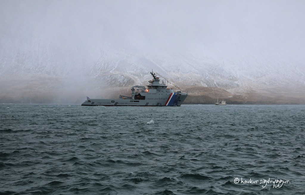 Það var heldur hryssingslegt veðrið á Siglufirði, norðan rok og slydda. Haukur Sigtryggur lét það ekki stoppa sig og fór bæjarleið til að mynda skipið og sendi meðfylgjandi myndir.