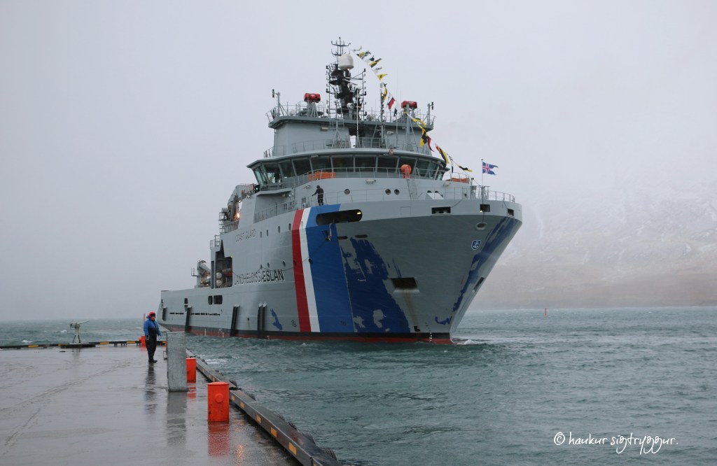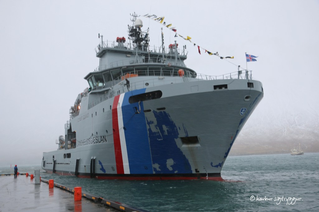 Varðskipið Freyja kom til heimahafnar á Siglufirði í dag eftir siglingu frá Rotterdam í Hollandi þar sem skipið var afhent Landhelgisgæslunni á dögunum.
