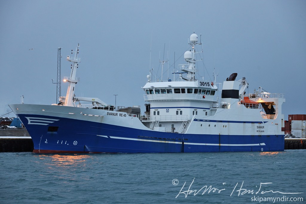 Svanur RE 45 hét upphaflega Strand Senior og var smíðað árið 1999, lengd skipsins er 67 metrar og breidd þess 13. Það mælist 1,969 brúttóttonn að stærð.