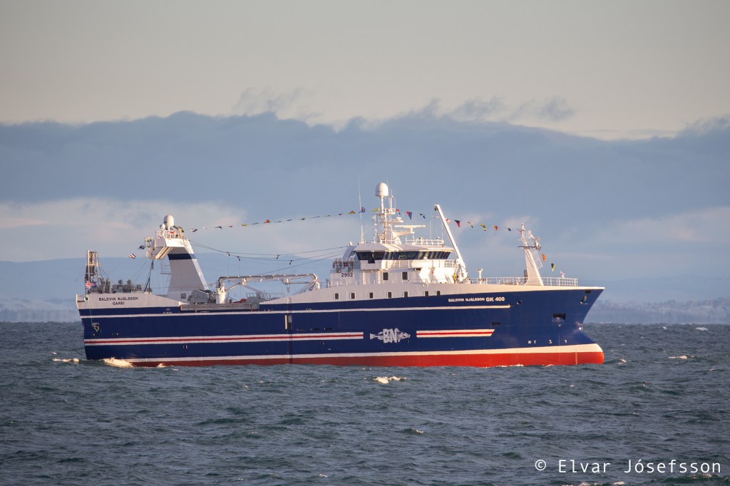 Nýr og glæsilegur frystitogari Nesfisks ehf., Baldvin Njálsson GK 400, kom til landsins í dag eftir siglingu frá Spáni þar sem hann var smíðaður.