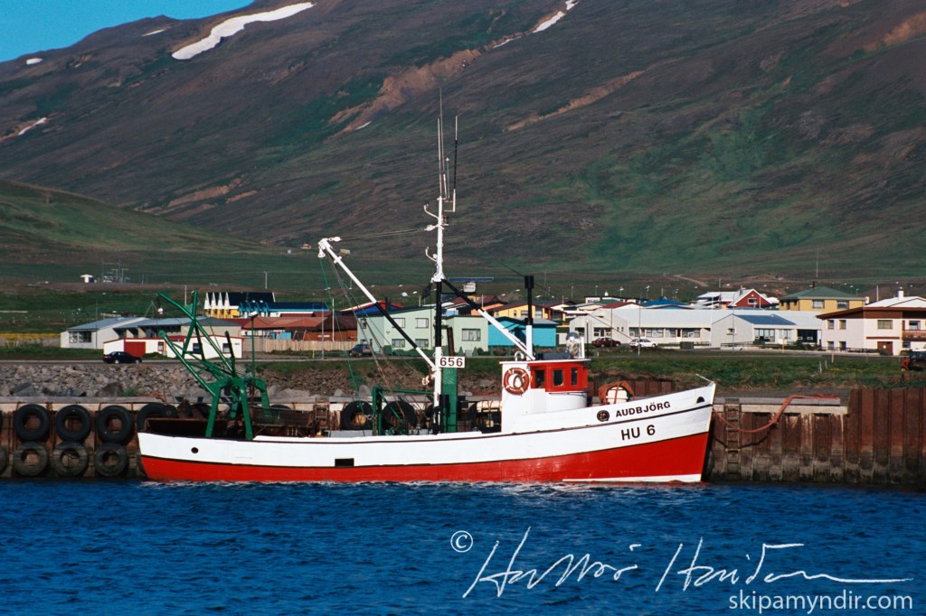 Auðbjörg HU 6 liggur hér við bryggju á Skagaströnd um árið en þaðan var báturinn gerður út um áratuga skeið.