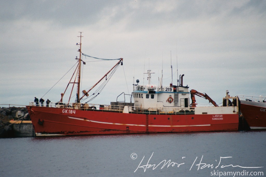 Ljósfari GK 184 liggur hér við bryggju í Sandgerði en það var Útgerðarfélagið Barðinn hf. sem átti hann og gerði út.