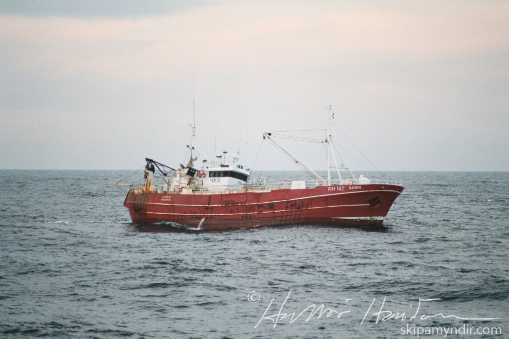 Hér togar Sjöfnin frá Grenivík á rækjuslóðinni um árið en það voru Hlaðir hf. sem gerðu bátinn út.