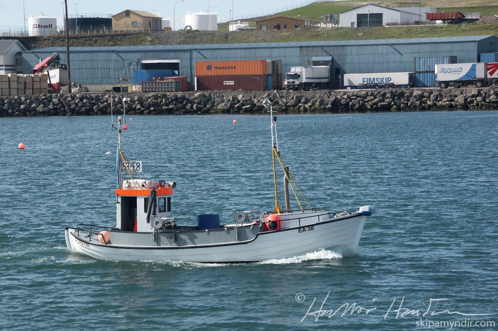 Hér kemur handfærabáturinn Von EA 38 að landi á Húsavík sumarið 2002. Hann var þá í eigu Grétars Ó. Gíslasonar á Akureyri.
