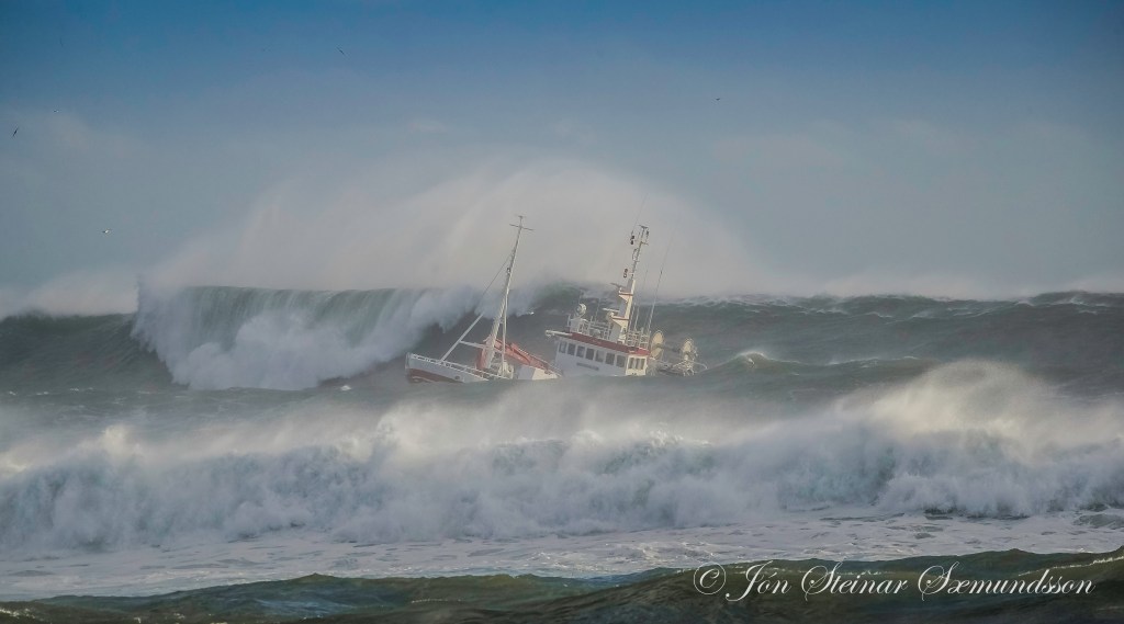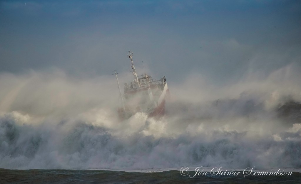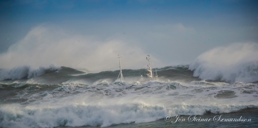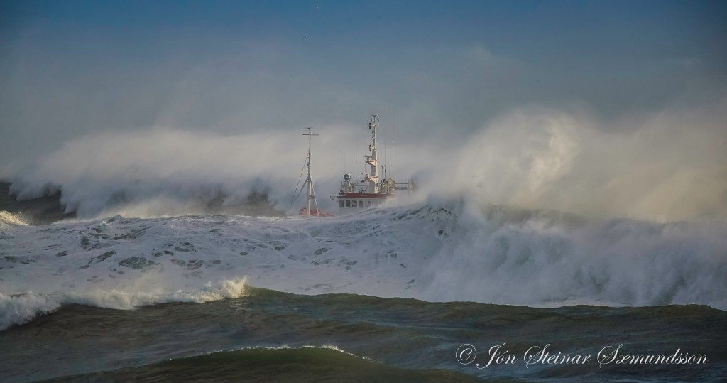 Það var fínasta veður en þegar að norðanáttin lendir á móti krappri sunnan bárunni getur hann orðið ansi úfinn eins og sjá má á þessum flottu myndum sem Jón Steinar tók.