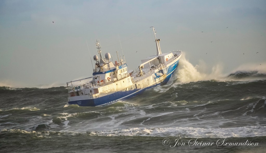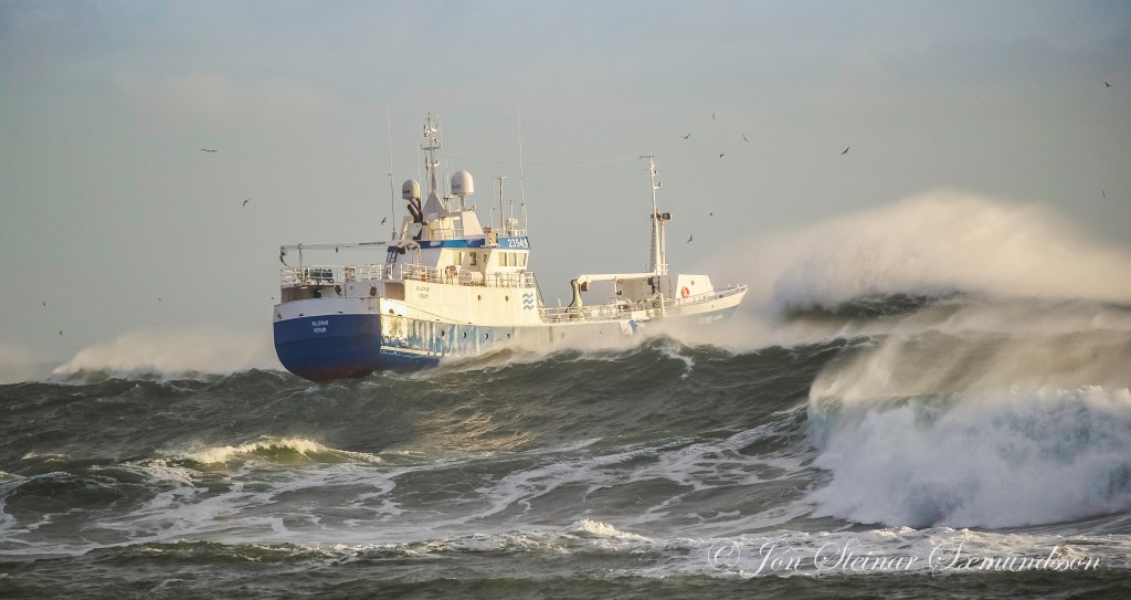 Veður var gott en þegar að norðanáttin lendir á móti krappri sunnan bárunni getur hann orðið ansi úfinn eins og sjá má á þessum flottu myndum sem Jón Steinar tók.