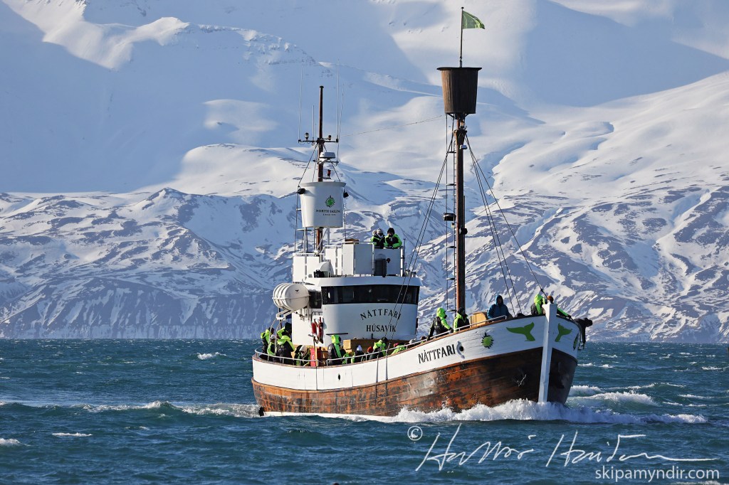 Náttfari hefur siglt með ferðamenn á hvalaslóðir Skjálfanda um árabil en þetta er 23. árið sem báturinn er gerður út til hvalaskoðunar af Norðursiglingu.