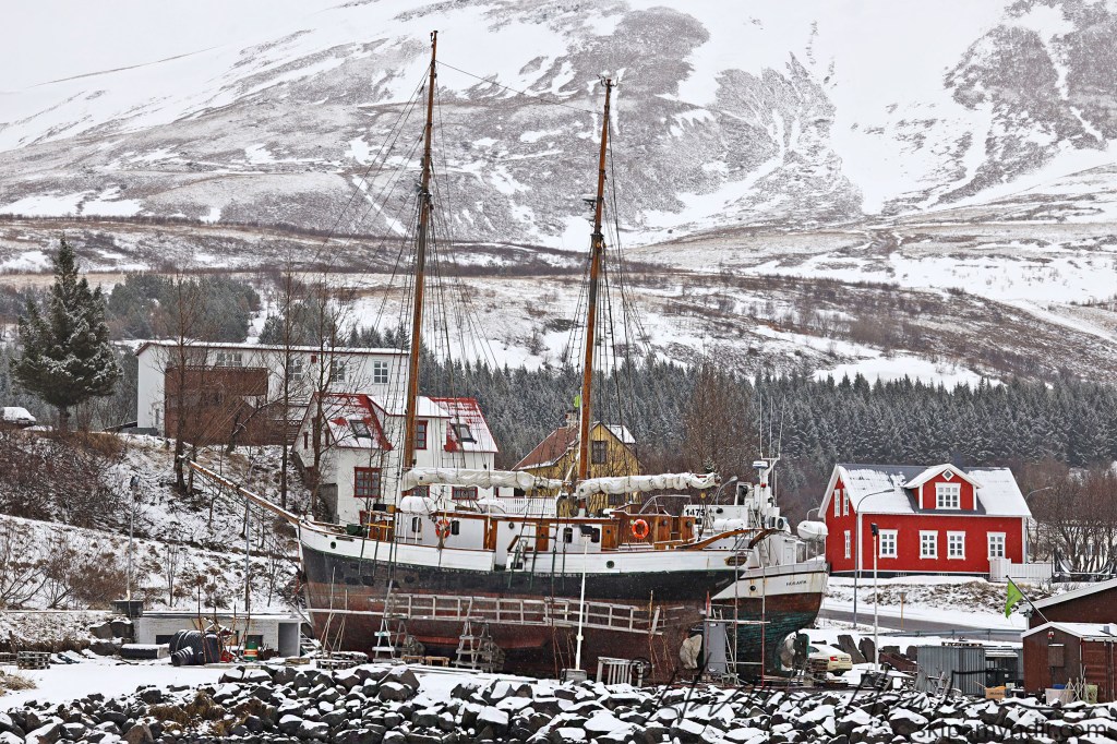 Donna Wood, ein af skonnortum Norðursiglingar, fór upp í slipp á Húsavík á dögunum þar sem unnið er að viðhaldi á henni.