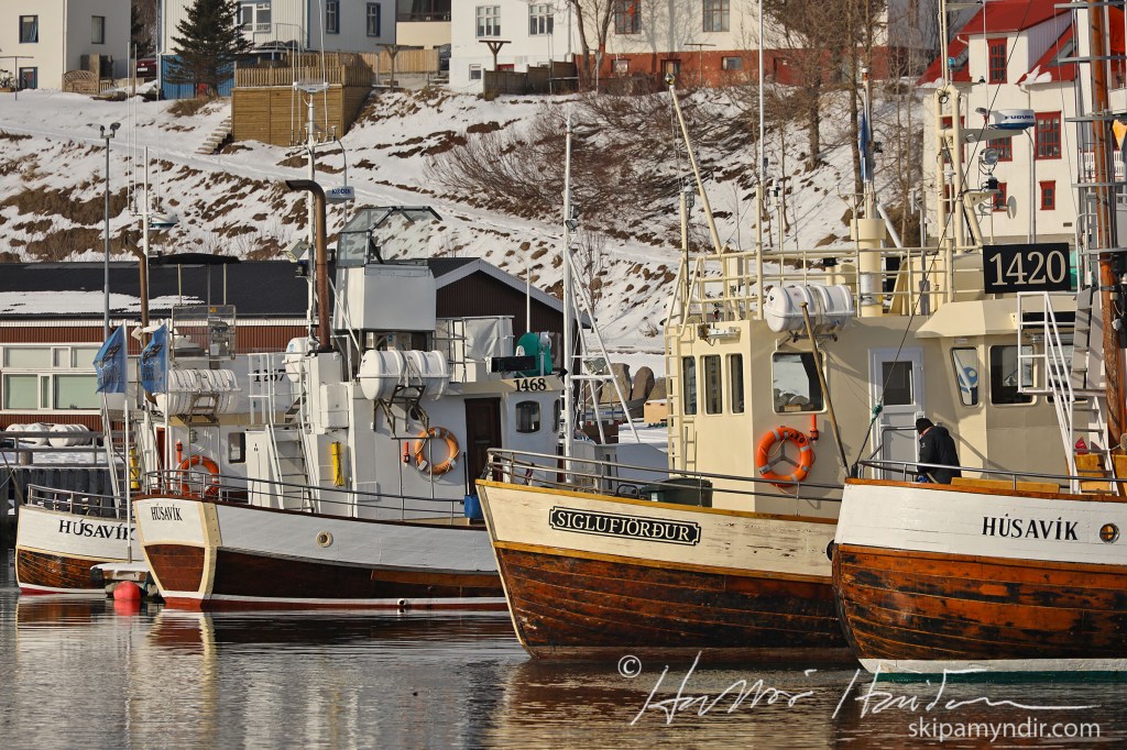 Hér gefur að líta eikarbáta fjóra í höfn á Húsavík en myndin var tekin í dag.