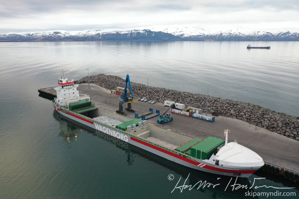 Virginiaborg kom upp að á undan Wilson Nanjing en bæði skipin eru með hráefnisfarma fyrir kísilver PCC á Bakka.